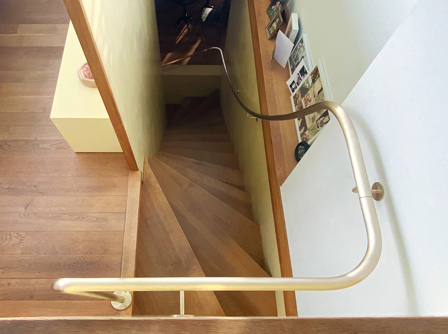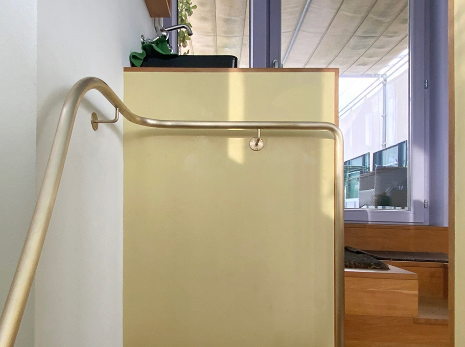 Messinghandlauf mit Bogen und mehreren Abwicklungen
