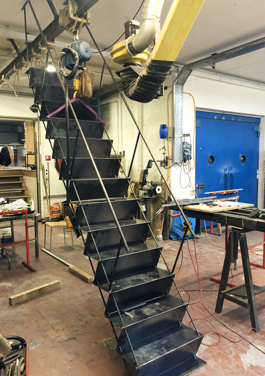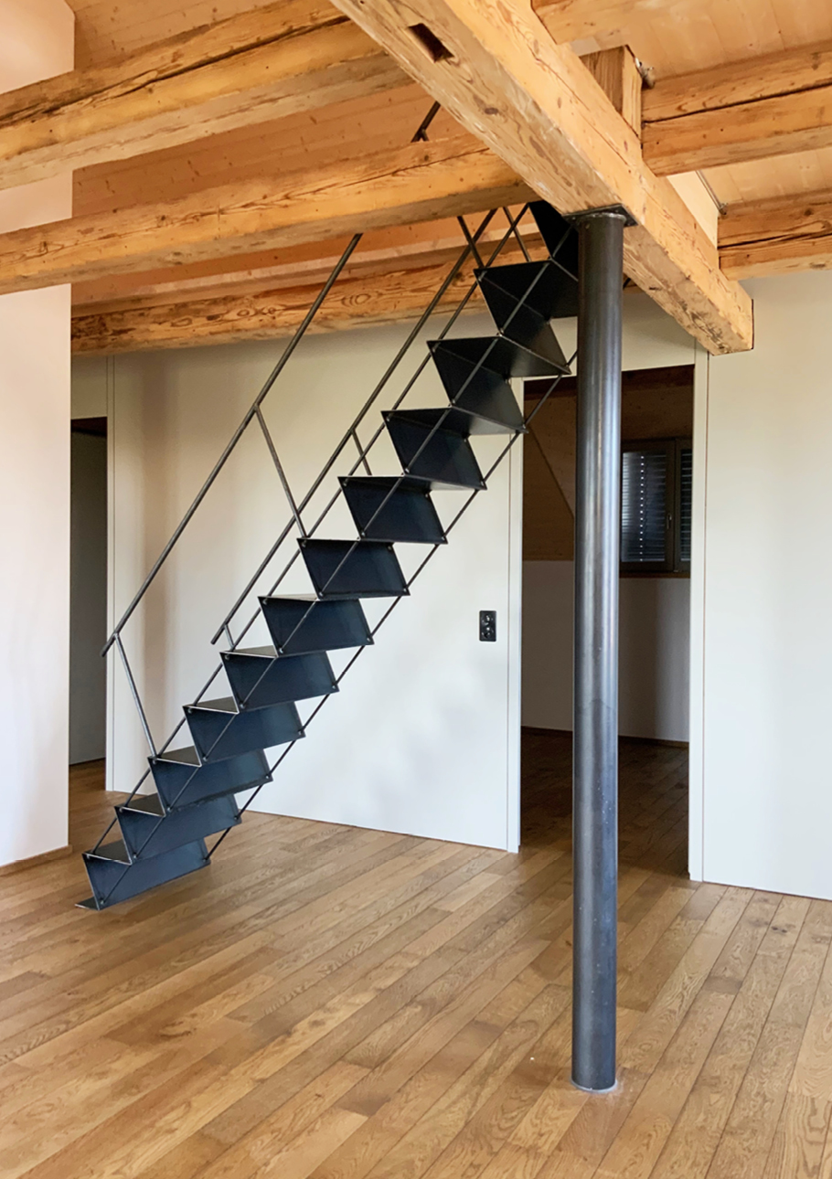 Planung und Ausführung einer aus Stahlblech gefalteten Treppe mit Handlauf