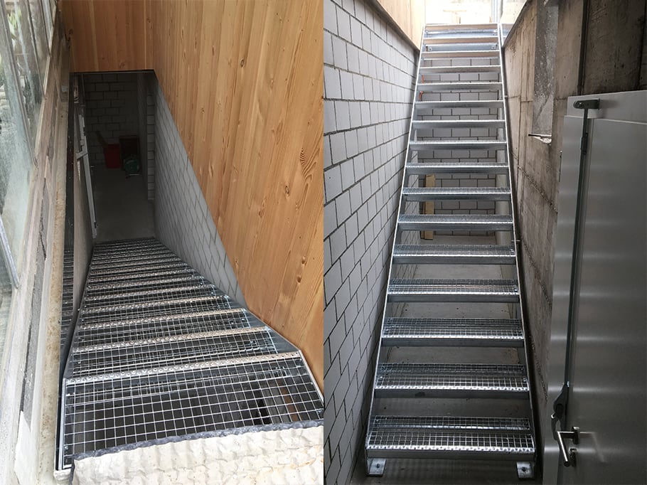 Treppe und Terrassenpodest aus Stahl verzinkt für ein Atelierhaus in Rombach/AG