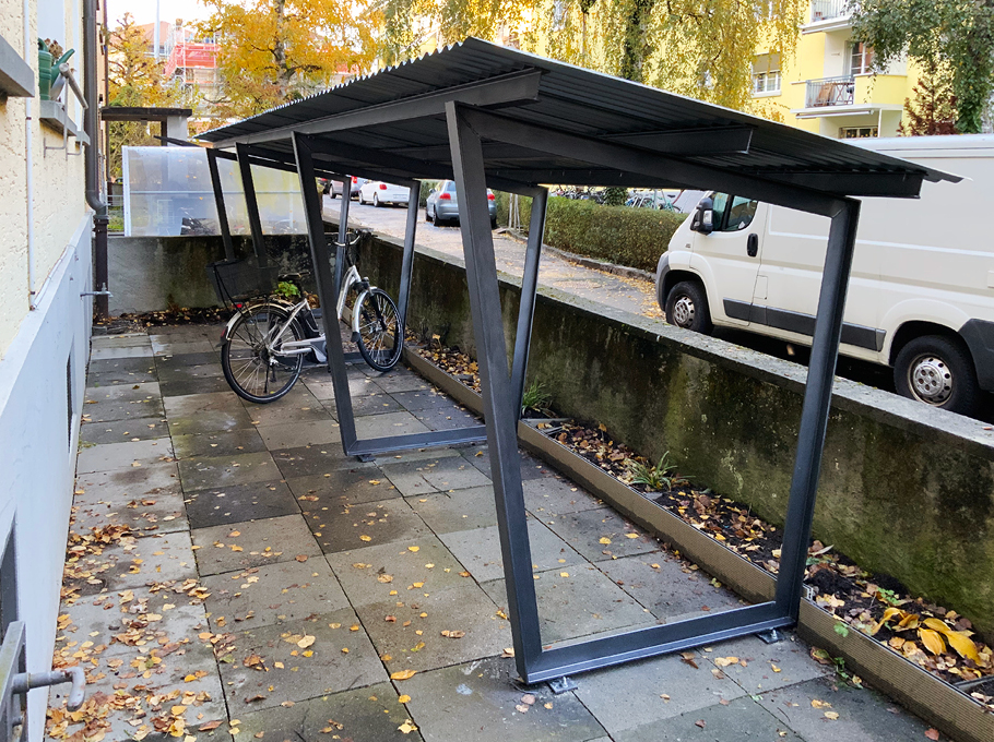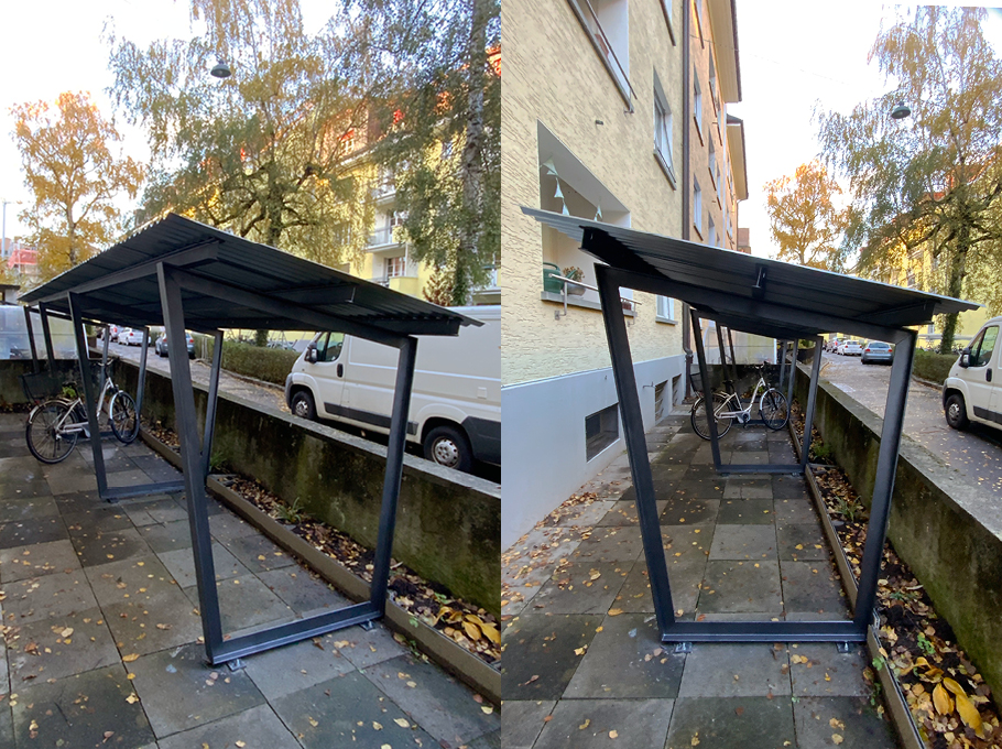 Material: Stahlkonstruktion mit aufgesetztem Dach aus verzinktem Wellblech